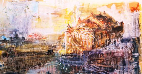 Валерий Кошляков в своей практике исследует то, как работает память в пространстве города с большой историей, как архитектура запускает коммеморативный импульс и интерес, сталкивая нас с прошлым. В отдельных случаях работы художника позволяют опознать знаменитые архитектурные сооружения и ансамбли. Римский фонтан Треви, который мы помним если не по личному опыту, то по одной сцене из фильма Федерико Феллини. Овальный купол церкви Сан-Карло на площади Четырех фонтанов в Риме — проект Франческо Борромини, самого экстравагантного архитектора эпохи барокко. Панорама парижской площади Согласия и вид на центр Жоржу Помпиду с птичьего полета. Множество небольших особняков и жилых кварталов из разных городов Европы — колыбели барокко и классицизма, источника вдохновения для градостроительной практики в имперской России и в СССР.
