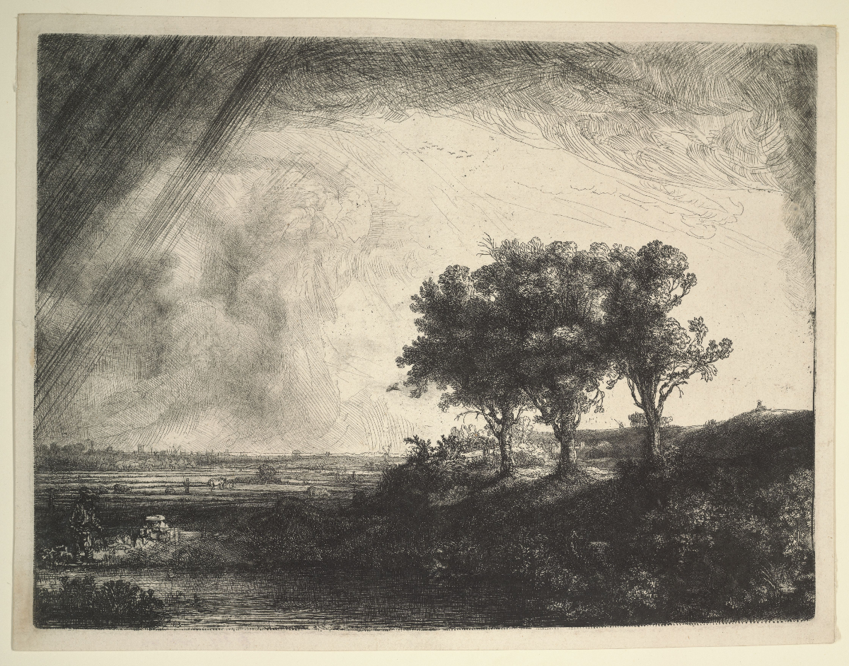 Завершает экспозицию раздел с поздними офортами великого голландского художника Рембрандта ван Рейна (1606–1669). К его творчеству в разные периоды жизни обращались и Франсиско Гойя, и Василий Чекрыгин, и Эдуард Штейнберг. Сферы земли и неба в его работах словно смыкаются, образуя «всемирное пространство», где противоположности соединяются вновь, и свет несет в себе обещание спасения.