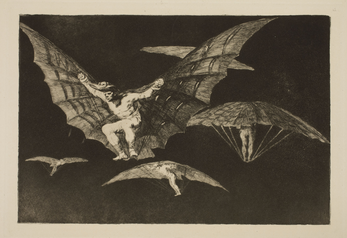 Название изображения Способ летать. Лист 13 из серии «Диспаратес». 1816–1824. Офорт, акватинта. Автор Франсиско де Гойя. Источник pushkinmuseum.art.