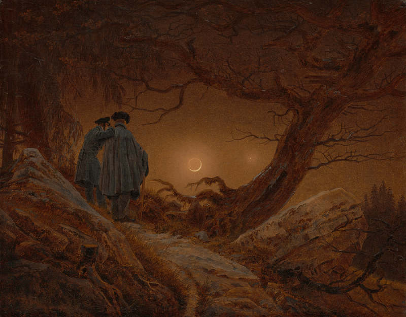 Многолетняя дружба связывала русского поэта В.А. Жуковского и немецкого живописца К.Д. Фридриха, чьи картины украшали личные покои императорской семьи. Прежде всего, художник прославился своими философскими пейзажами — «ландшафтами души», в которых воплотилось философское постижение мира. Другой герой выставки, гениальный русский живописец Александр Иванов, на протяжении всей жизни пытался создать новый язык религиозного искусства и стремился выразить в нем глубокое погружение и проникновение в суть евангельской истории.