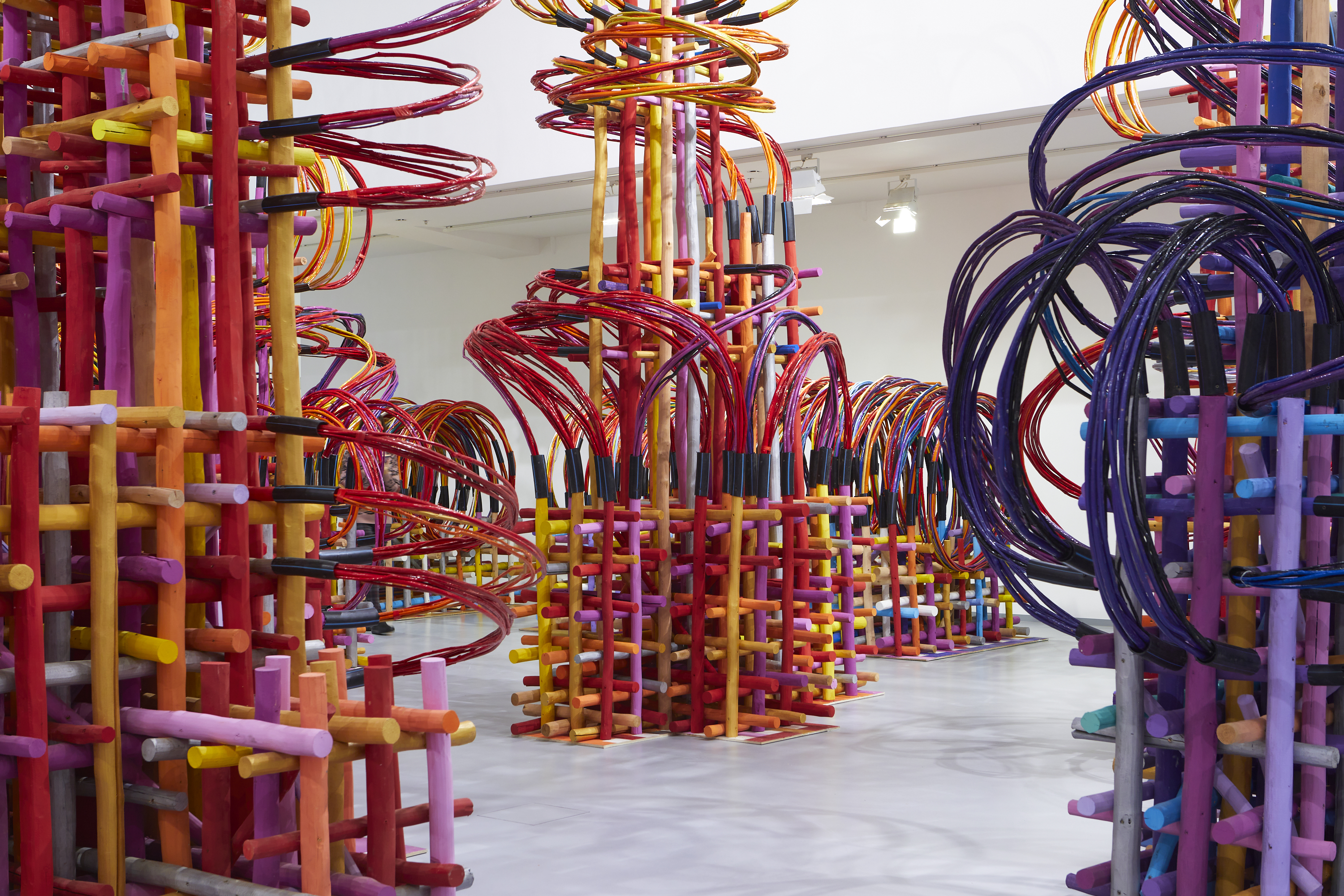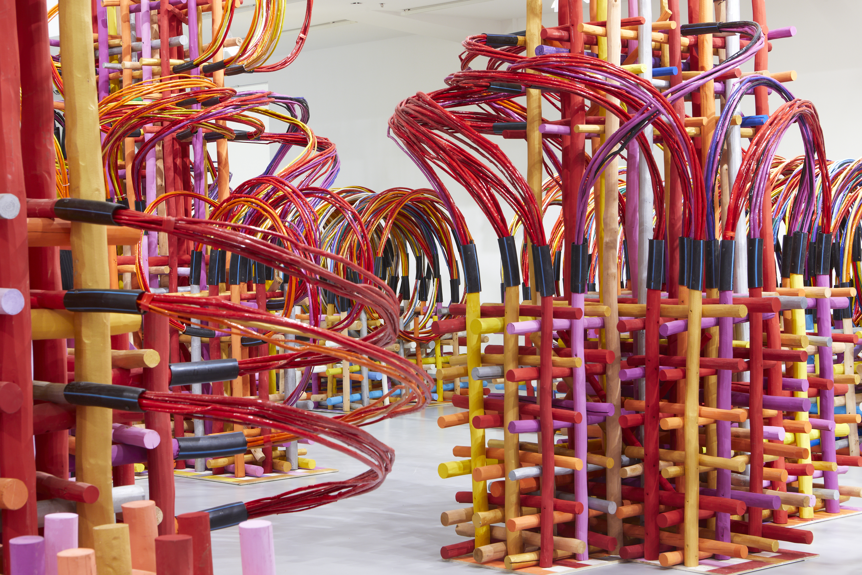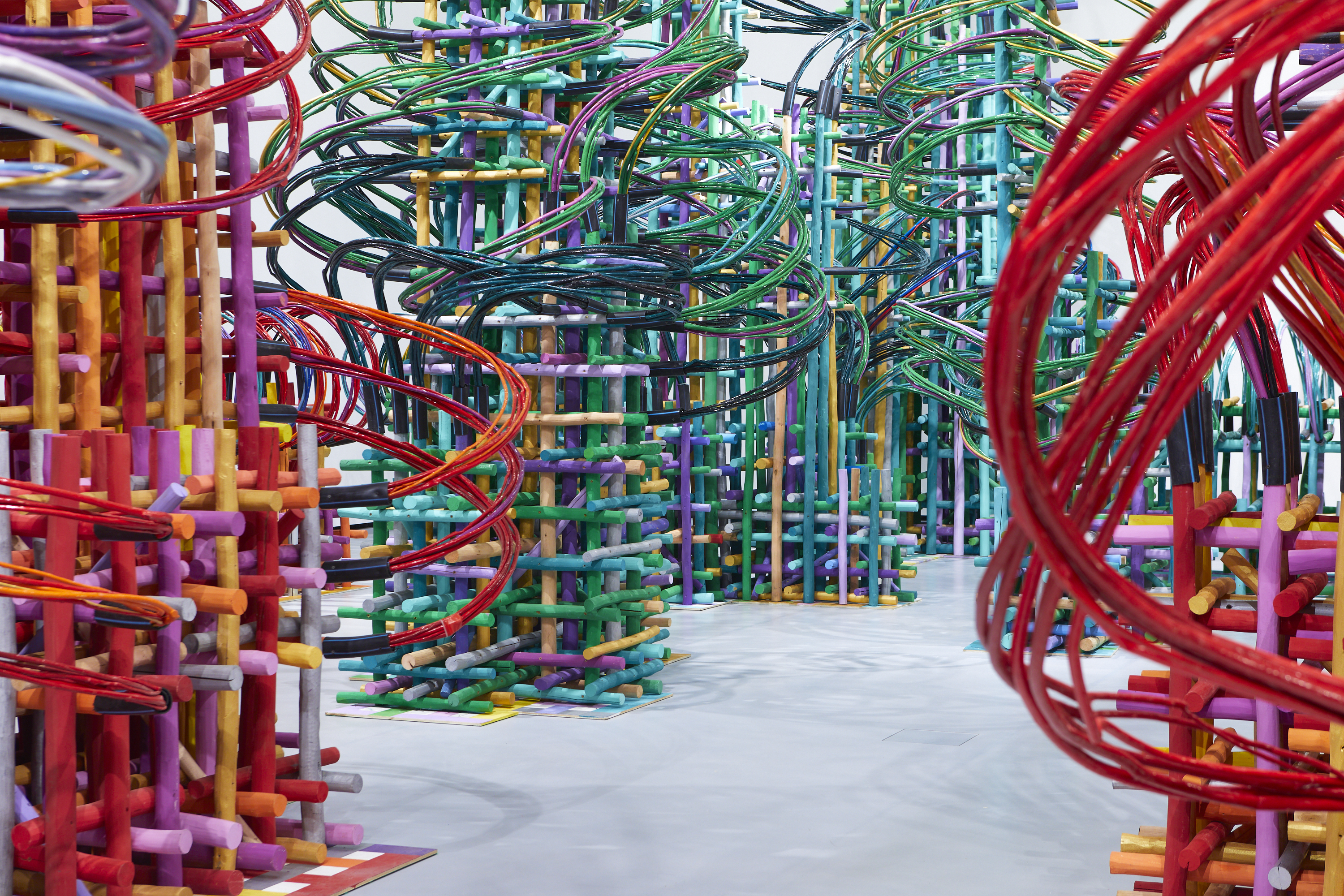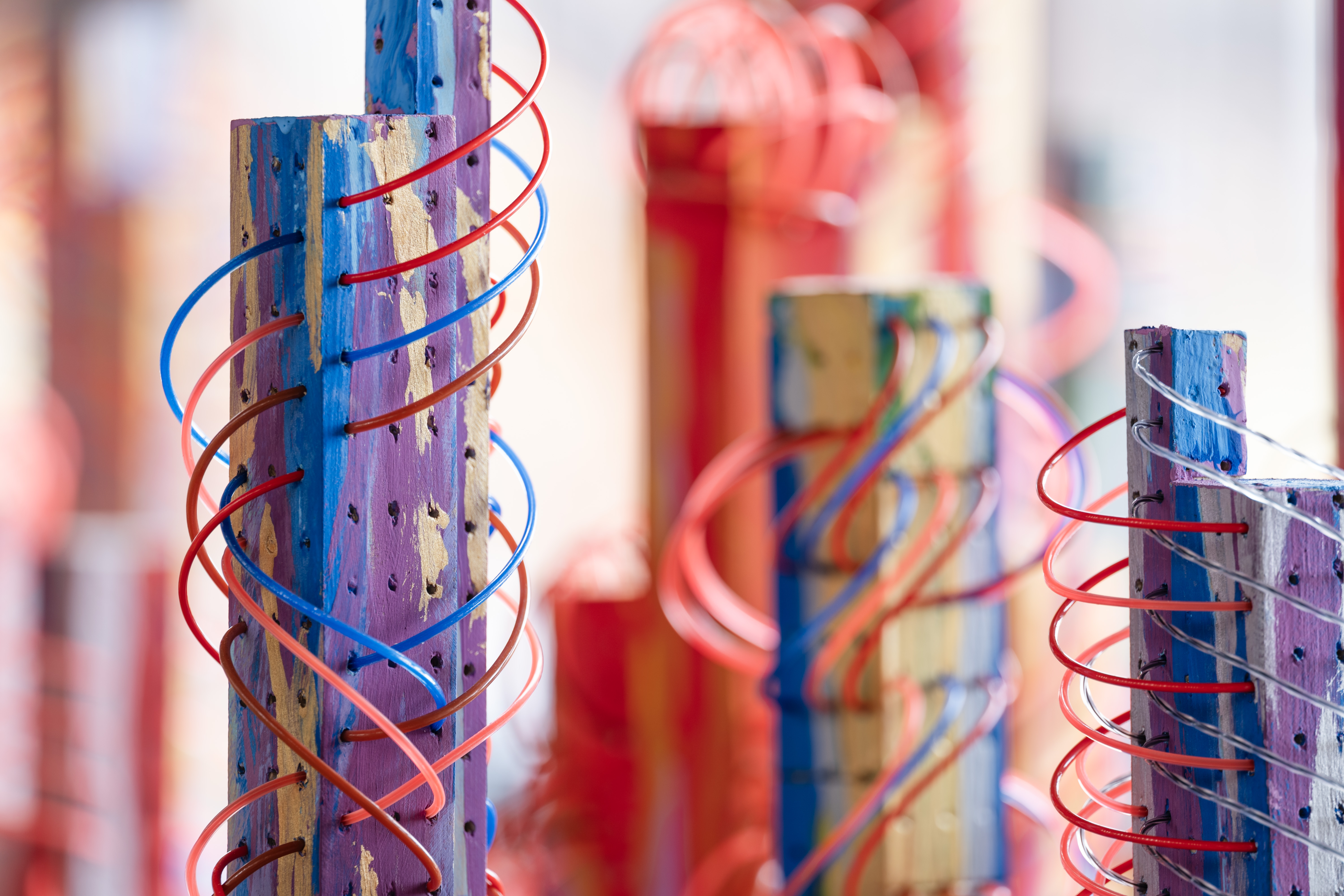 Более двух лет Николай Полисский работал над проектом для МАММ. «Электроарт» — это пластическая метафора современного мегаполиса, опутанного электрическими проводами, которые протянуты под землей и над землей, пронизывают жилые и производственные пространства.