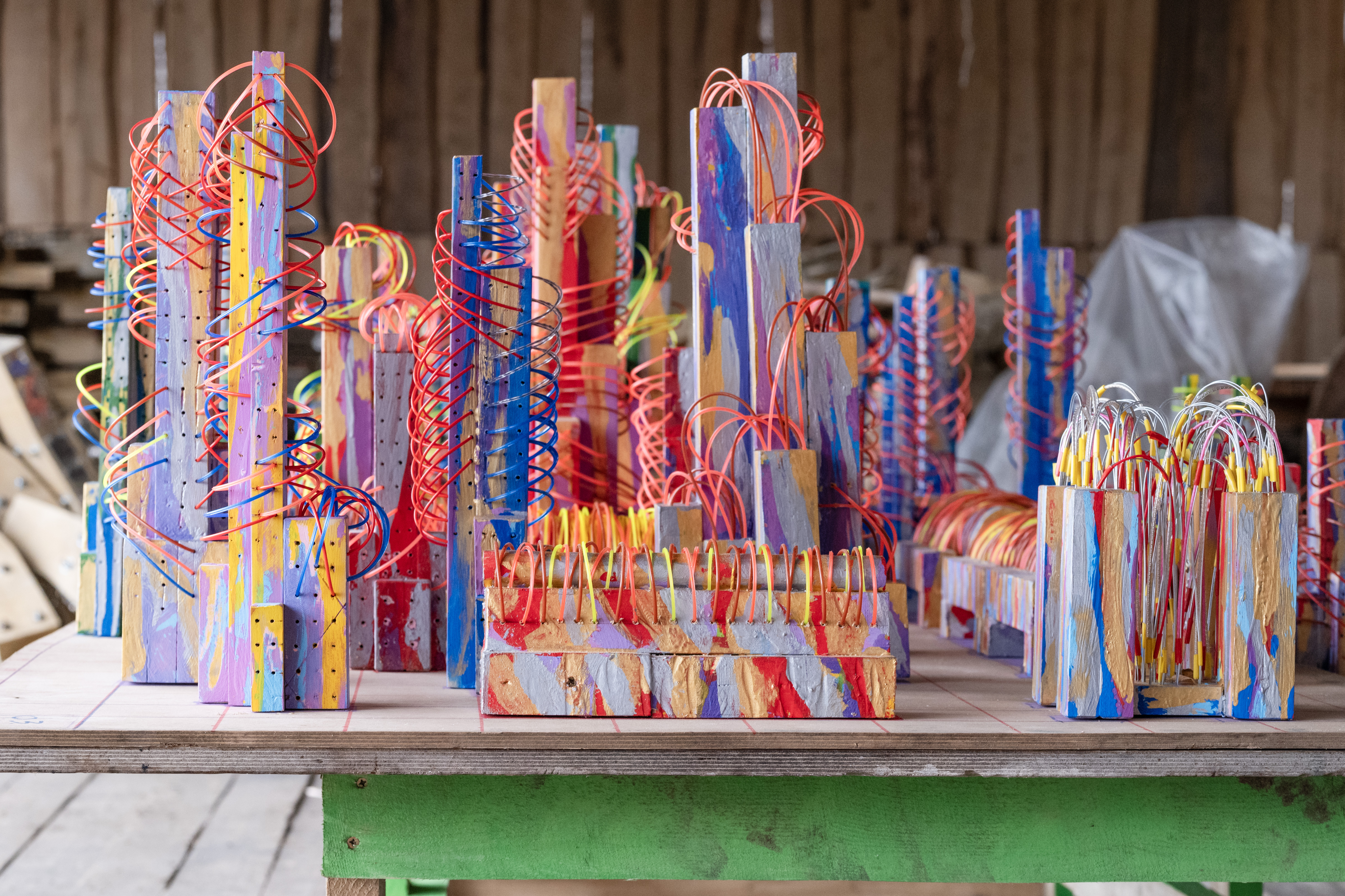 Создавая «Электроарт», художник апеллировал к знаменитым архитектонам Малевича. Использование уже традиционных для Полисского материалов — дерева и лозы — придает универсальным архетипическим формам определенную теплоту и человечность.