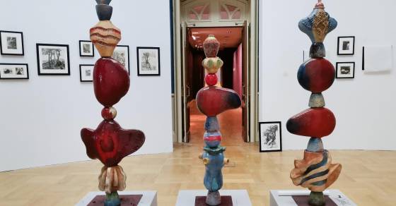Выставку-посвящение, на которой можно увидеть более 200 работ, собрала дочь художников – керамист и куратор Татьяна Пунанс. В экспозиции – крупные пространственные объекты, керамические пласты, графические листы, живопись и медали из бронзы и фарфора, в том числе из коллекции музея и частных собраний.