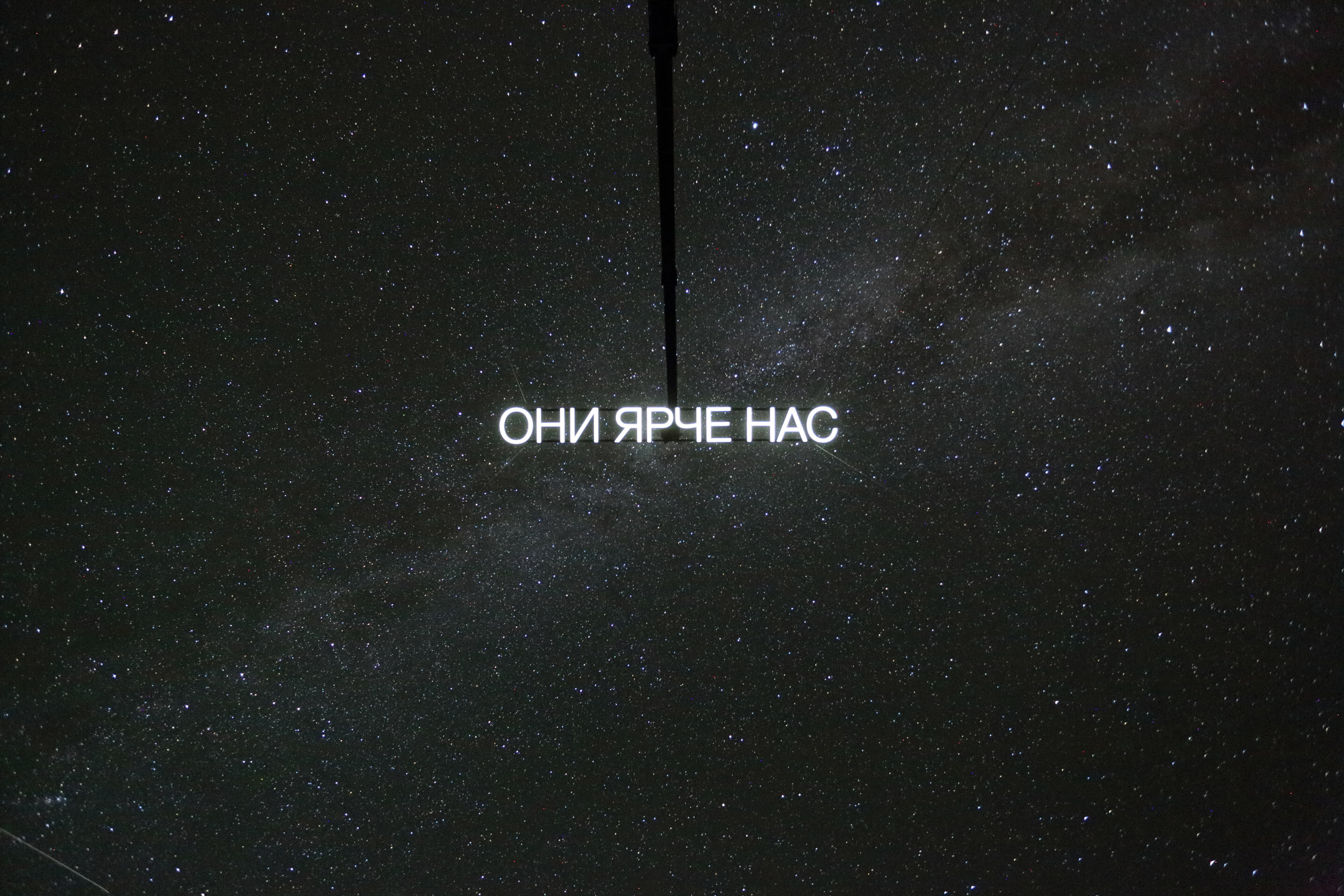Выставка «Между строк. Текстуальное в визуальном» посвящена осмыслению феномена текстуальности в современном российском искусстве. Проект объединяет произведения 25 авторов, в практике которых непосредственное присутствие текста играет первостепенную роль или же является важной составляющей художественного языка. В представленных на выставке работах текст обретает визуальную форму в самых разных медиа — от живописи до уличной акции, от инсталляции до вышивки. В некоторых случаях определяющим является концептуальное содержание текста, в иных — не менее значительна его пластическая форма. Не столь важно, является ли текст самодостаточным художественным высказыванием или же неразрывно, словно часть химического соединения, сплавлен с визуальной составляющей, воплощает собой нарратив или лишь его часть, именно он определяет сам формат коммуникации со зрителем.