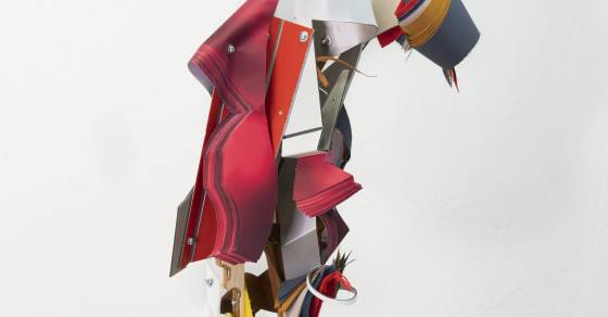 Миша Бурый собирает отходы производства — обрезки бумаги или картона, куски пластика и фанеры, излишки полиграфических или строительных процессов — и делает из них антропоморфные скульптуры. Этот аккуратный мусор не просто подвергается апсайклингу, художник выстроил целую теорию вокруг собственной деятельности. Современные люди, по его мнению, живут в безжалостном мире, где от них мало что зависит, в любой момент они готовы всего лишиться. Как раз такие персонажи, в духе осовремененных Книг Иова и Екклесиаста, представлены в скульптурах Бурого. Зритель сразу видит главное: они рождены из праха и могут с легкостью в него вернуться, чтобы быть пересобранными в новых людей. Затем цикл непременно повторится — и так до бесконечности. Как будто в каком-то бесчеловечном конструкторе, существа эти претерпевают непрерывные мутации. Их хрупкое временное человекоподобие постоянно подвергается испытаниям и искушениям.