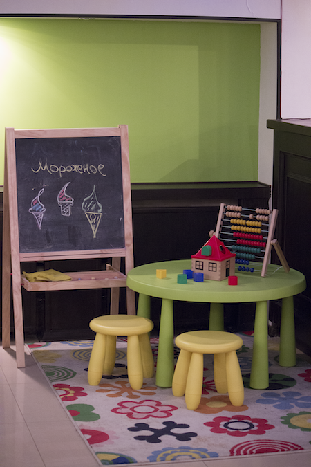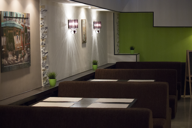 Здесь Вас ждет уютная расслабляющая атмосфера в сочетании с простым интерьером. Здесь есть 4 зала — 2 из них отлично подходят для проведения праздников и корпоративов средней компанией на 5-12 человек, также в ресторане есть небольшая детская зона, где Вы можете оставить свое чадо.