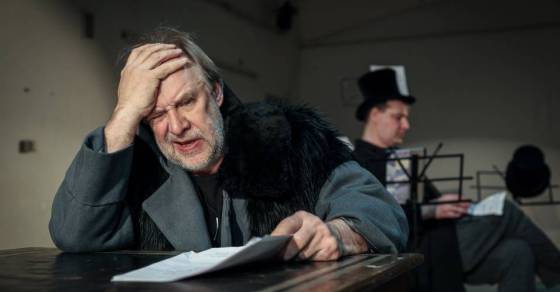 Замечательный молодой артист Евгений Бархатов органично существует в роли лакея Луки в женском платье, с бородой и огромным бантом на голове, самозабвенно читает монолог Ирины из «Трёх сестёр» о пользе труда. Несомненно, это комедийная удача спектакля, умная клоунада.