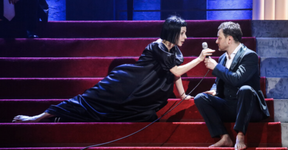 Казалось бы, секрет успеха раскрыт — используешь драматические переживания главных героев как фон и два с половиной часа смеешься над второстепенными персонажами. Об утрате вишневого сада и родового гнезда можно не вспоминать вовсе. Если бы не одно «но»… Муравицкий словно каждому из героев прописывает принадлежность к той или иной исторической эпохе. Здесь и недобитые аристократы царской России теряют свою родину и уезжают на Запад, и интеллигенция живет романтическими идеалами, и «Молодой Ленин» (Петр Трофимов, блистательно исполненный приглашенным артистом Олегом Соколовым), который этими идеалами опьянен. Такое решение подкреплено сценографией Наны Абдрашитовой, которая в духе «Бориса Годунова» Иво ван Хове запирает героев на внушительной мраморной лестнице с красной ковровой дорожкой. И вот уже перед глазами метафора современной России — герои с ценностями из разных исторических эпох одинаково комичны в декорации из пафосного мрамора, красных ковров и помпезных светильников. Как будто попал в Большой театр после ремонта. Все дорого, богато и нарядно. Все фальшиво и от этого «до слез» смешно.