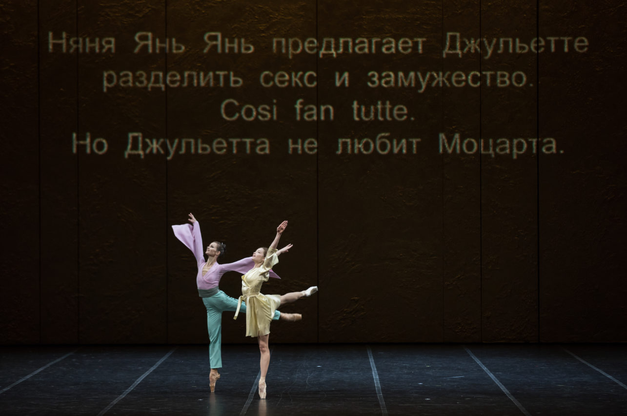 Название изображения Евгений Жуков – Ромео, Оксана Кардаш – Джульетта, Лоран Илер – Он, Дарья Павленко – Она. Автор Карина Житкова. Источник stanmus.ru.