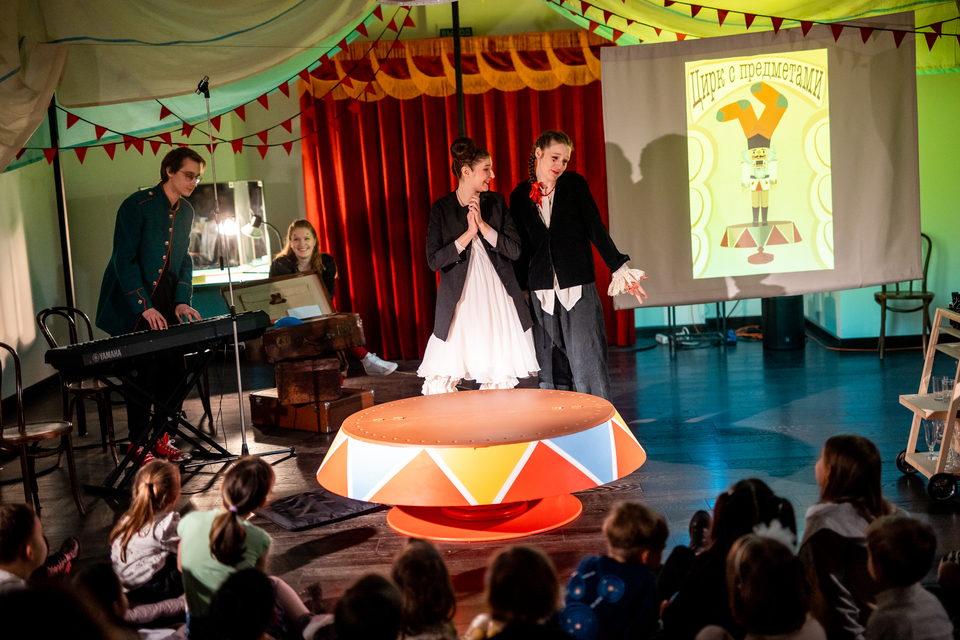 Ко Дню театра мы приготовили подарок для самых юных зрителей — спектакль «Цирк с предметами». Это увлекательное путешествие в мир привычных всем предметов, каждый из которых на самом деле обладает волшебными свойствами. На цирковой арене вместо акробатов и клоунов окажутся левитирующие магниты и тянущиеся во все стороны резинки, поющие любовные арии игрушки, марширующие чайные чашки и многое другое.