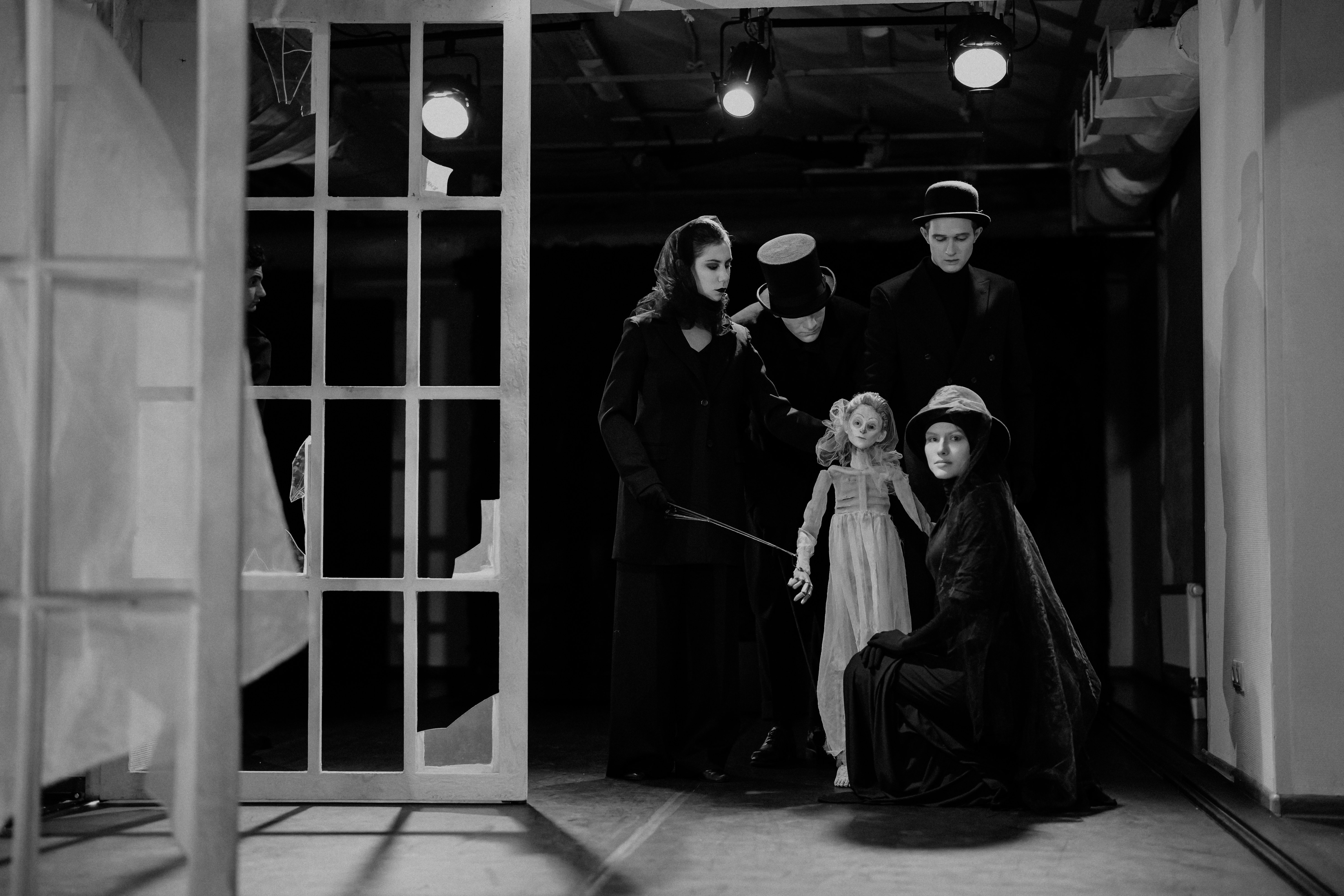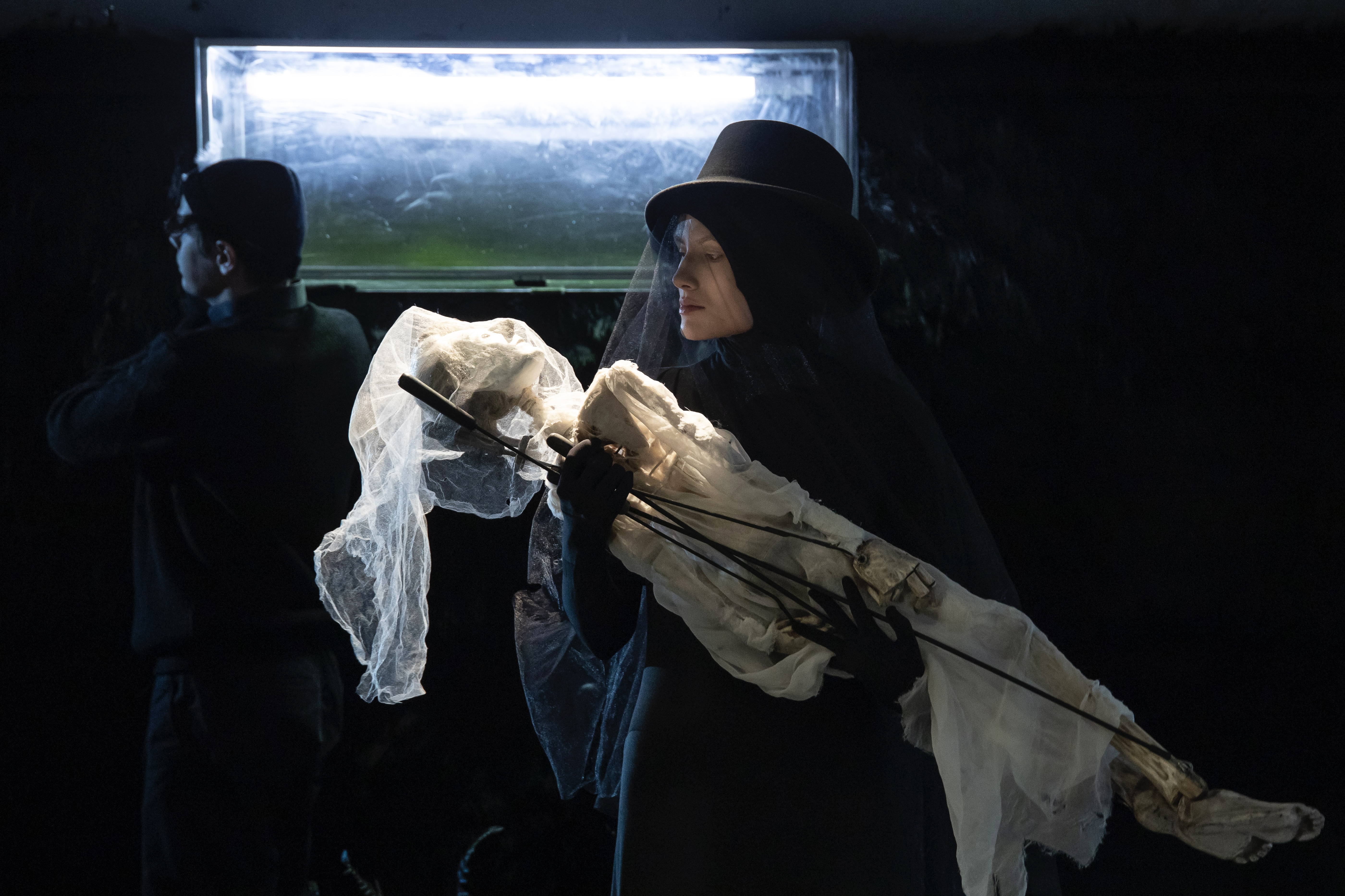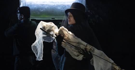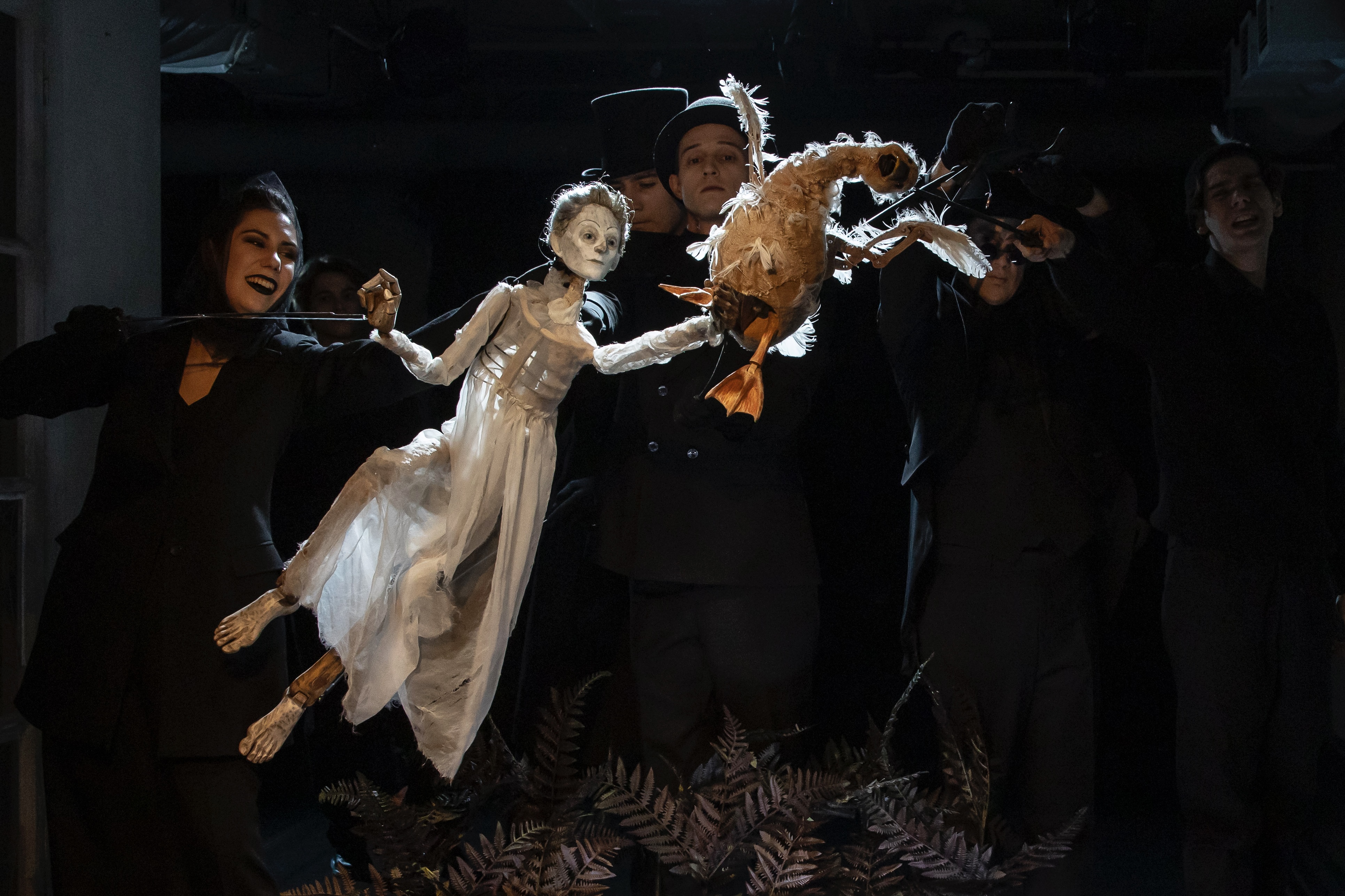 Такие тихие истории нужно рассказывать особенно камерно. Среди героев спектакля — сложнейшие куклы, каждой из которой управляют несколько артистов. Специально для «Последнего сна Уточки» они учились искусству вождения кукол.