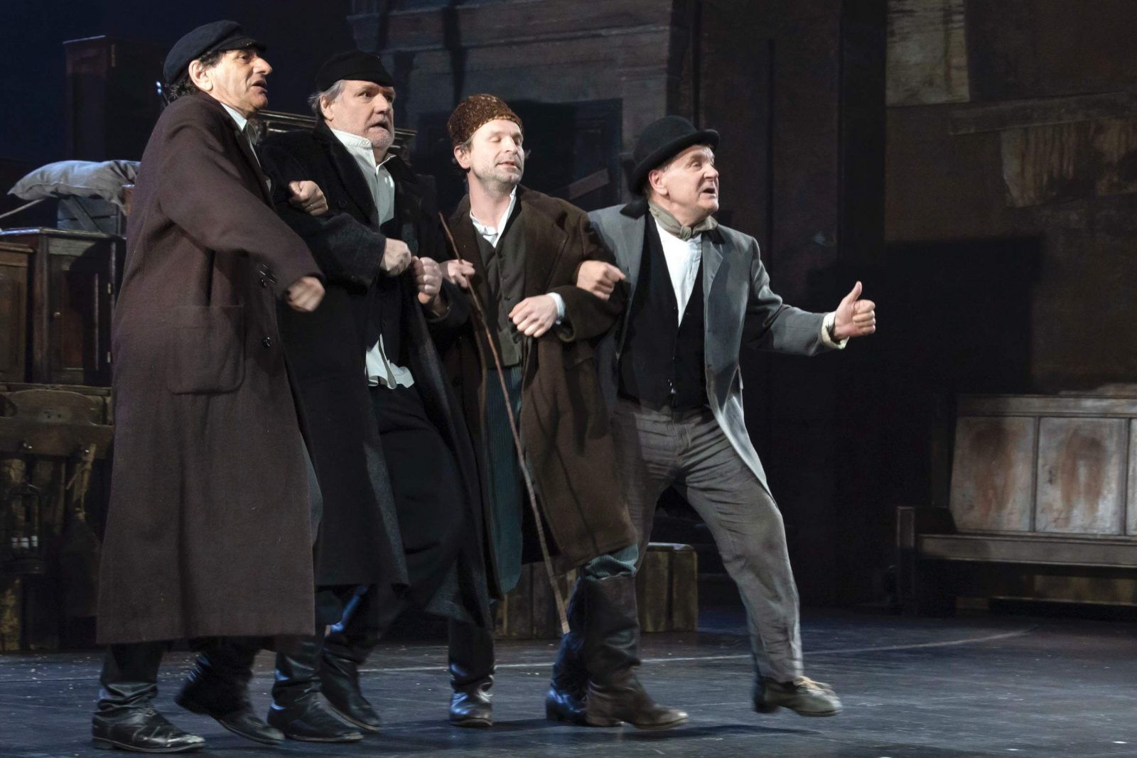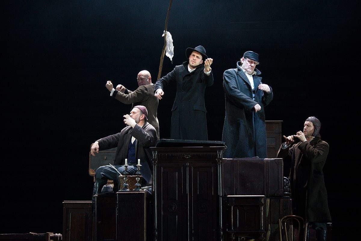 Пьесу – притчу по роману Григория Кановича инсценировал Римас Туминас. О чем она? О долгом жизненном пути стариков евреев, едущих из местечка в Вильно узнать о судьбе сына одного из них, покушавшегося на жизнь генерала губернатора.